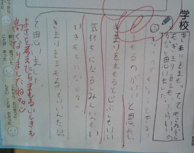 今回の道徳授業や日々の授業を通して「規則の尊重」について児童と共に考え、みんなできまりを守り、気持ちよく生活できるようにしていく意欲を高められるように指導を続けていきます。