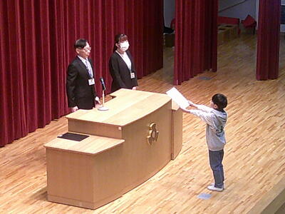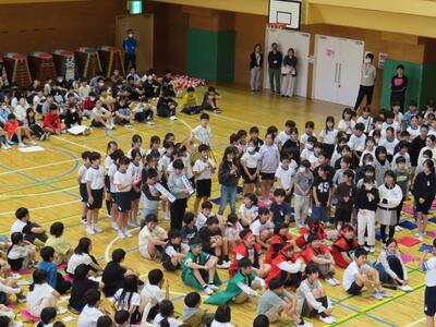 今日、1年生を迎える会が行われました。進行や準備は子どもたちが主体となって行い、上級生を中心に、みんなで心を込めて1年生を迎える姿が印象的でした。各学年の発表では、歌や言葉、工夫をこらした出し物が続き、1年生も笑顔いっぱいで楽しんでいました。会の終盤には、2年生からの贈り物が渡され、1年生からは元気いっぱいの歌の発表がありました。学校全体があたたかな雰囲気に包まれた、すてきな時間となりました。