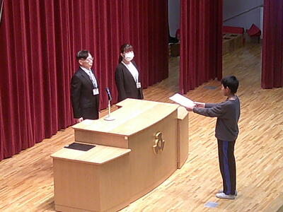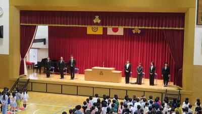 本日、離任式を行いました。これまで本校でお世話になった先生方に感謝の気持ちを伝えるため、子どもたちは真剣な表情で式に臨みました。代表の児童が心のこもったお手紙を読み上げ、もう一人の児童が花束を手渡しました。先生方も笑顔で受け取ってくださり、温かな時間となりました。ご都合により出席できなかった先生もいらっしゃいましたが、無事に式を終えることができました。離任された先生方のこれからのご活躍を、学校一同心よりお祈りしています。