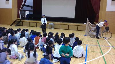 自転車と歩行者の事故、横断歩道の渡り方、一時停止と安全確認、車や歩行者から見た自転車の乗り方などについて学習しました。また、自転車の安全点検のポイントをを合言葉とともに押さえました。合言葉は「ブタベルサハラ」です。ブレーキ、タイヤ、ベル、サドル、ハンドル・反射板、ライトを御家庭でも確認してみてください。