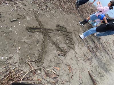 海岸では貝拾いやサンドアートを行いとても楽しみました。