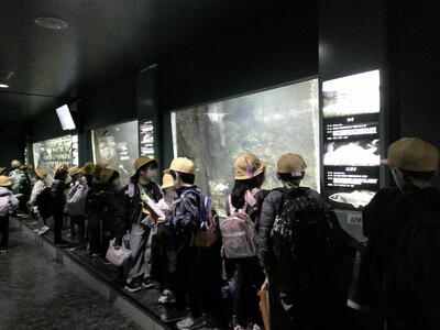 水族館では、班ごとにクイズを解いたり、作ったりしながら見学しました。川魚を中心に、貴重な生き物の展示があり、水槽をじっくりと見る様子が多くみられました。