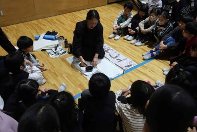講師の方をお招きし、書きぞめの準備や片付け、筆の扱いなどを教わりました。講師の方の美しい筆づかいに子供達も感動していました。集中して取り組み、初めての書きぞめを楽しみました。これから、大きく元気な字が書けるよう、教わったことを活かして練習していきます。