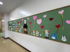 図書室内の壁面は節分に替え、廊下の壁面はバレンタインに替えました。